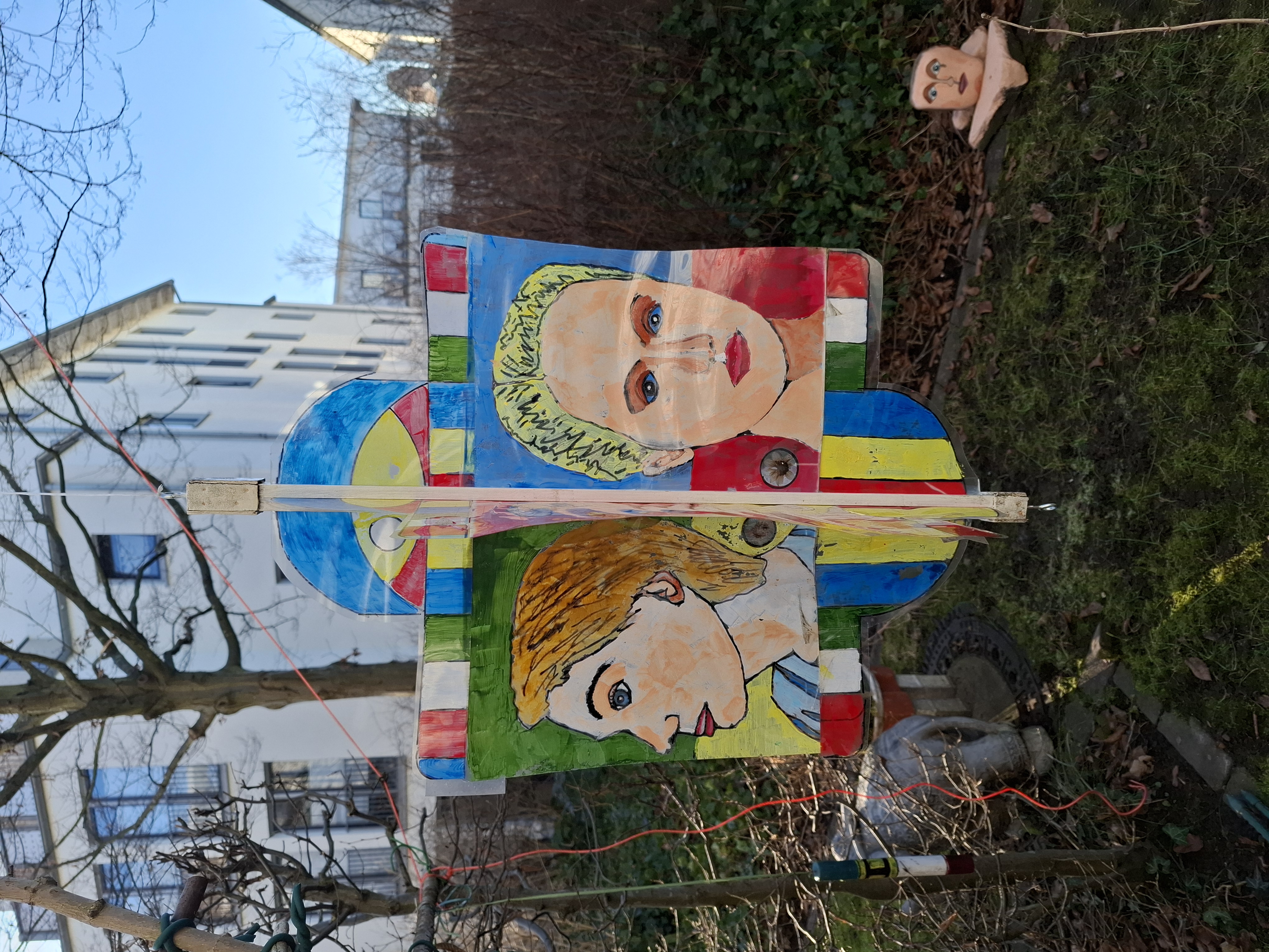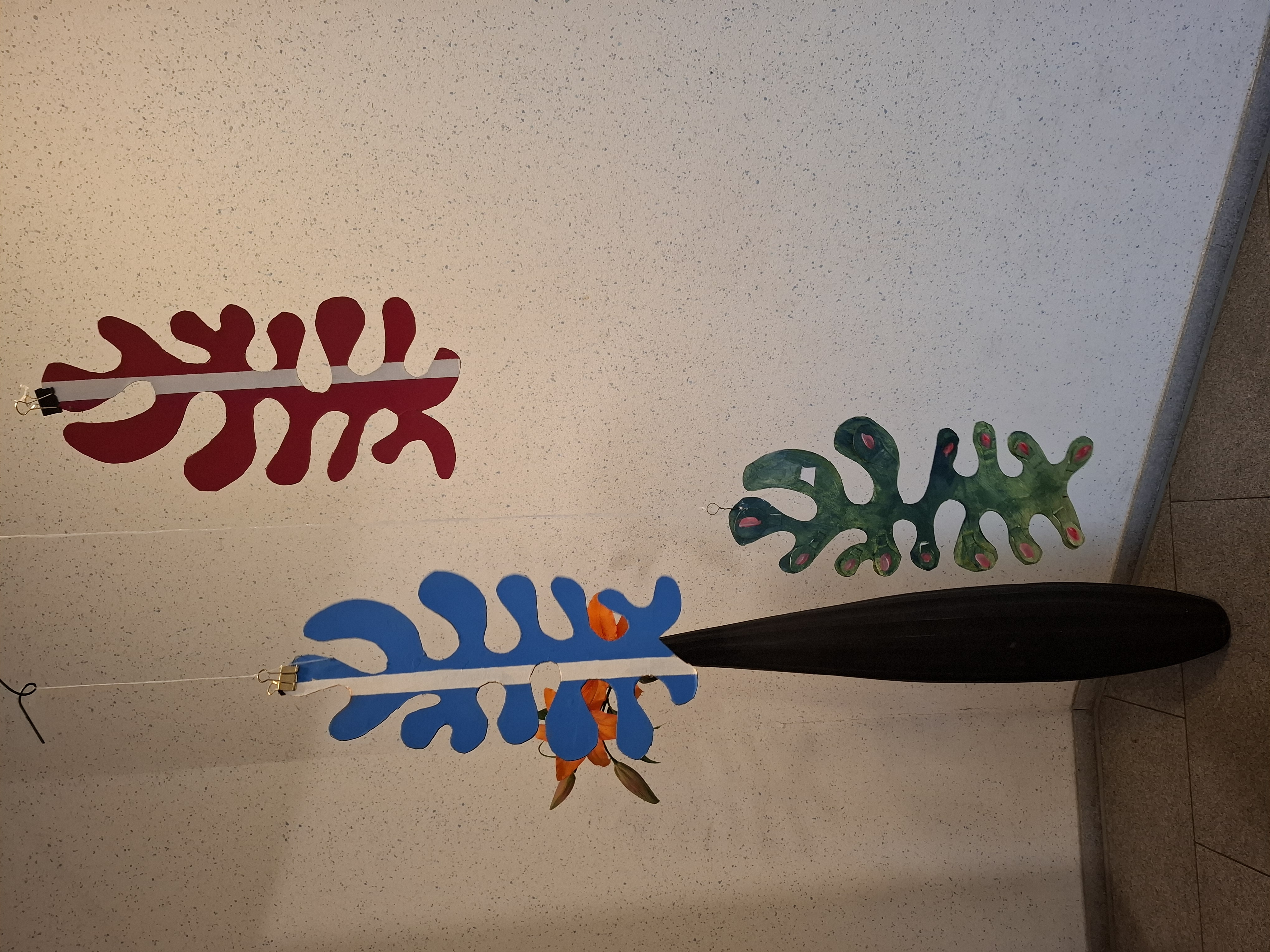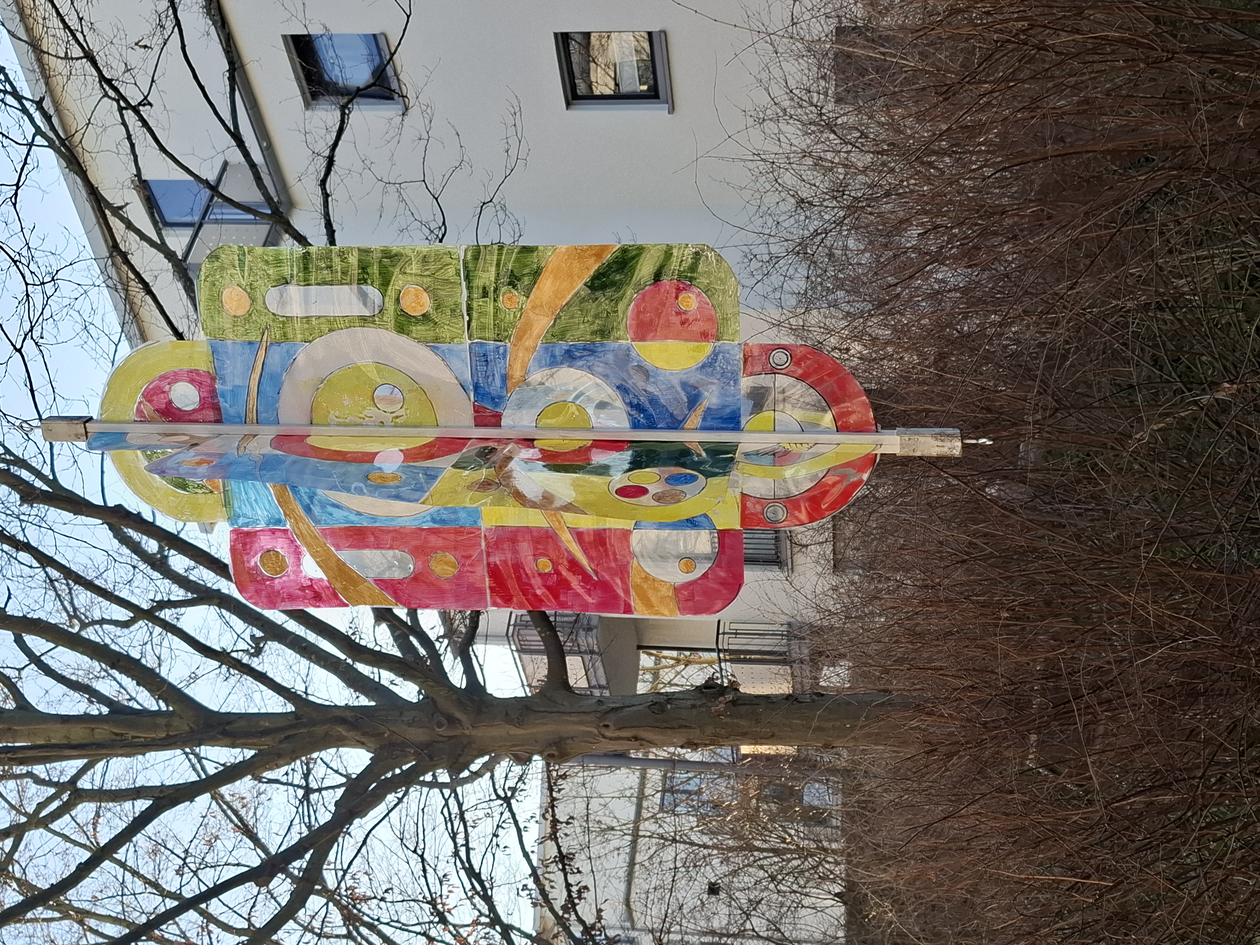 Laminierarbeit mit Acryl, dreiteilig, 160 x 60 cm( auch draußen verwendbar )