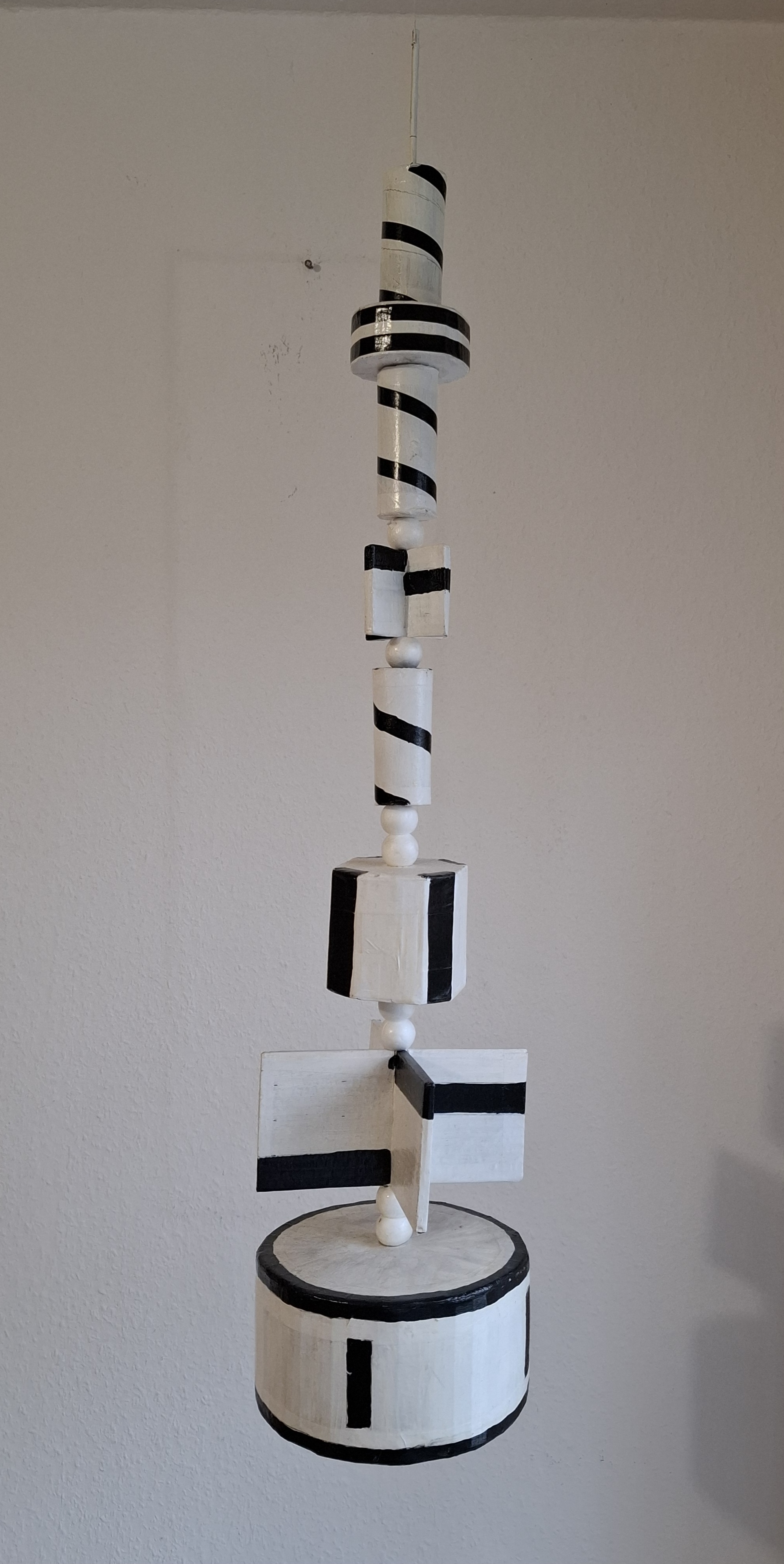 Mobile Kunstwerke verkörpern die ewige Dialektik zwischen Stabilität und Wandel, indem sie uns vor Augen führen, dass selbst scheinbar feste Strukturen in ständiger Bewegung und Transformation begriffen sind. Die Mobile-Werke vom Künstler Fred Hucko verwandeln durch ihre interaktive Beziehung mit dem natürlichen Element des Windes den Raum um sie herum in einen lebendigen Organismus. In ihrer schwebenden Leichtigkeit und ihrer Fähigkeit, auf subtilste Luftströmungen zu reagieren, symbolisieren diese Kunstwerke die Sensibilität und Anpassungsfähigkeit, die wir als Menschen in einer sich stetig verändernden Welt kultivieren müssen.