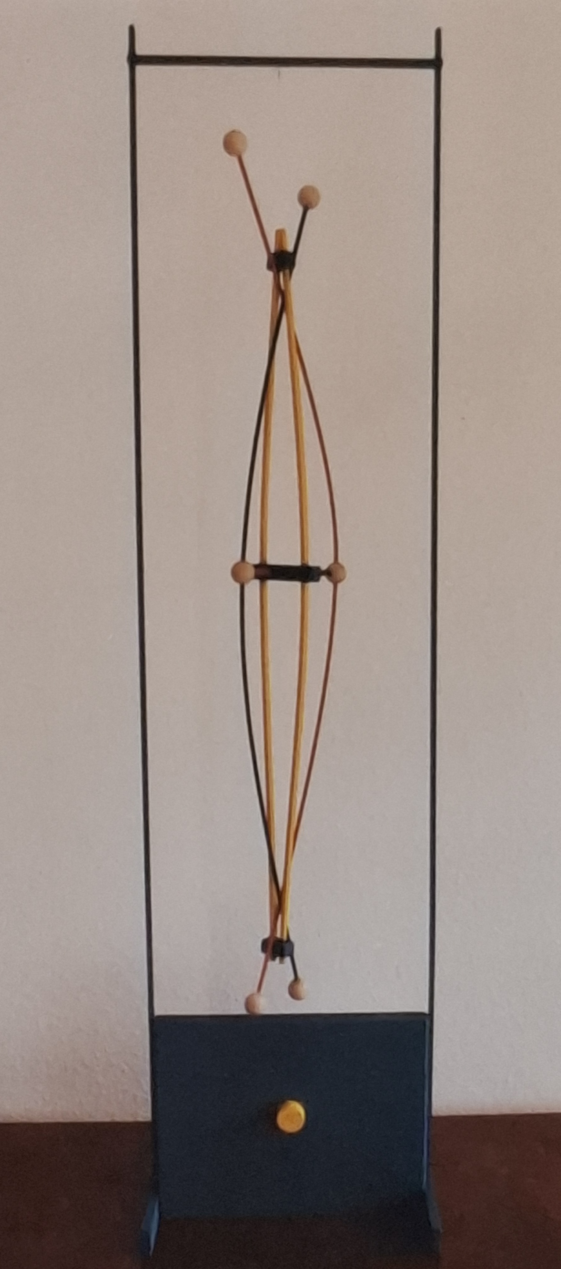 Holz, Acryl, Mylonfäden mit Hängegestell, 110 cm x 25 cm