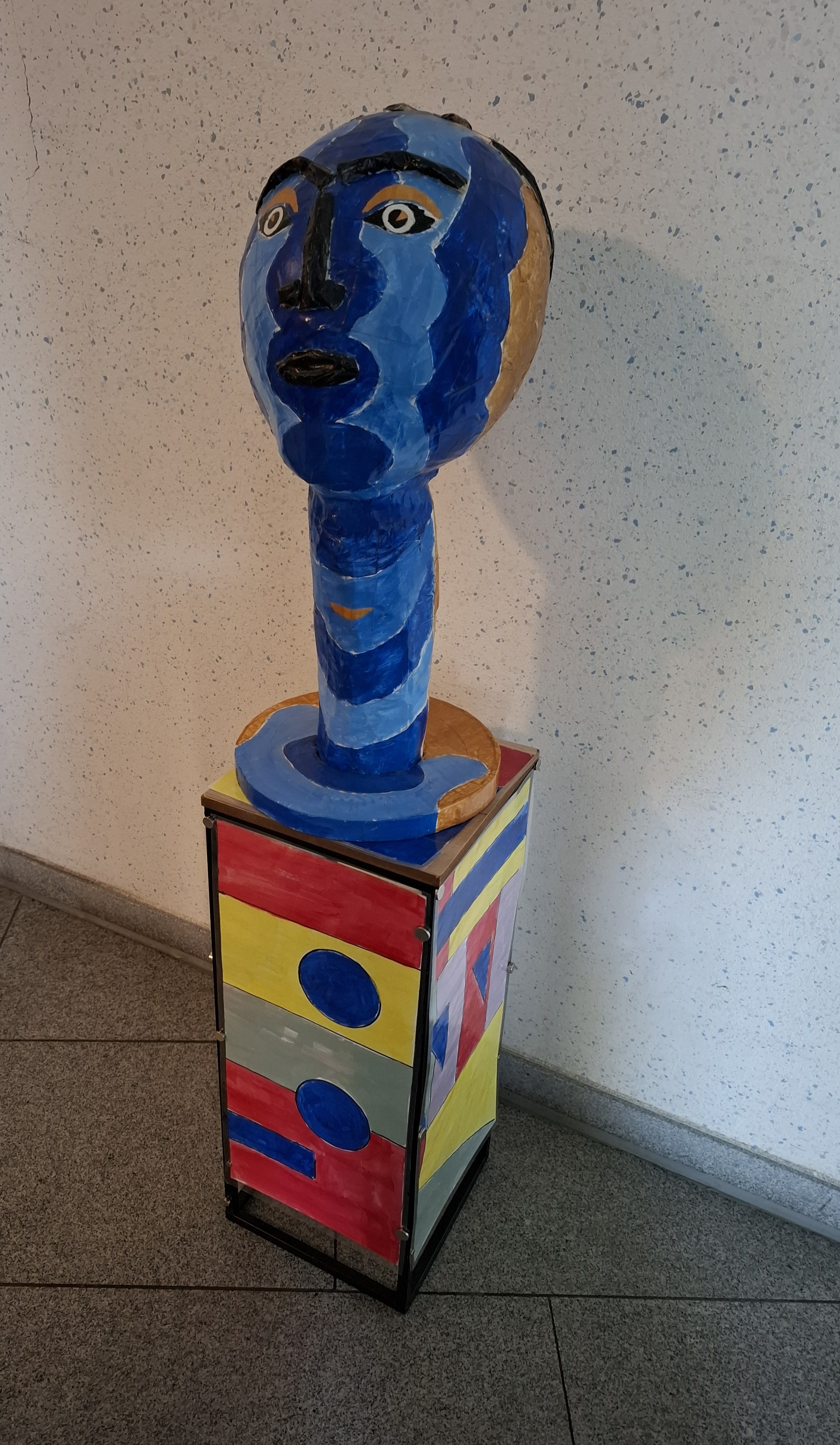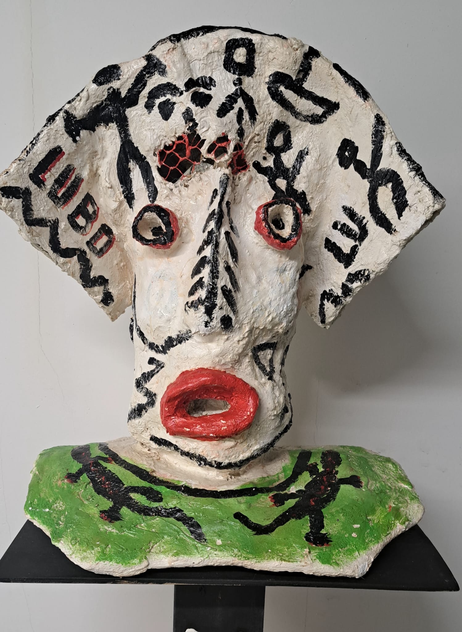 Acryl auf Pappe, (teilweise Pappmache' ) 46 x 64 cm (Kopfumfang)