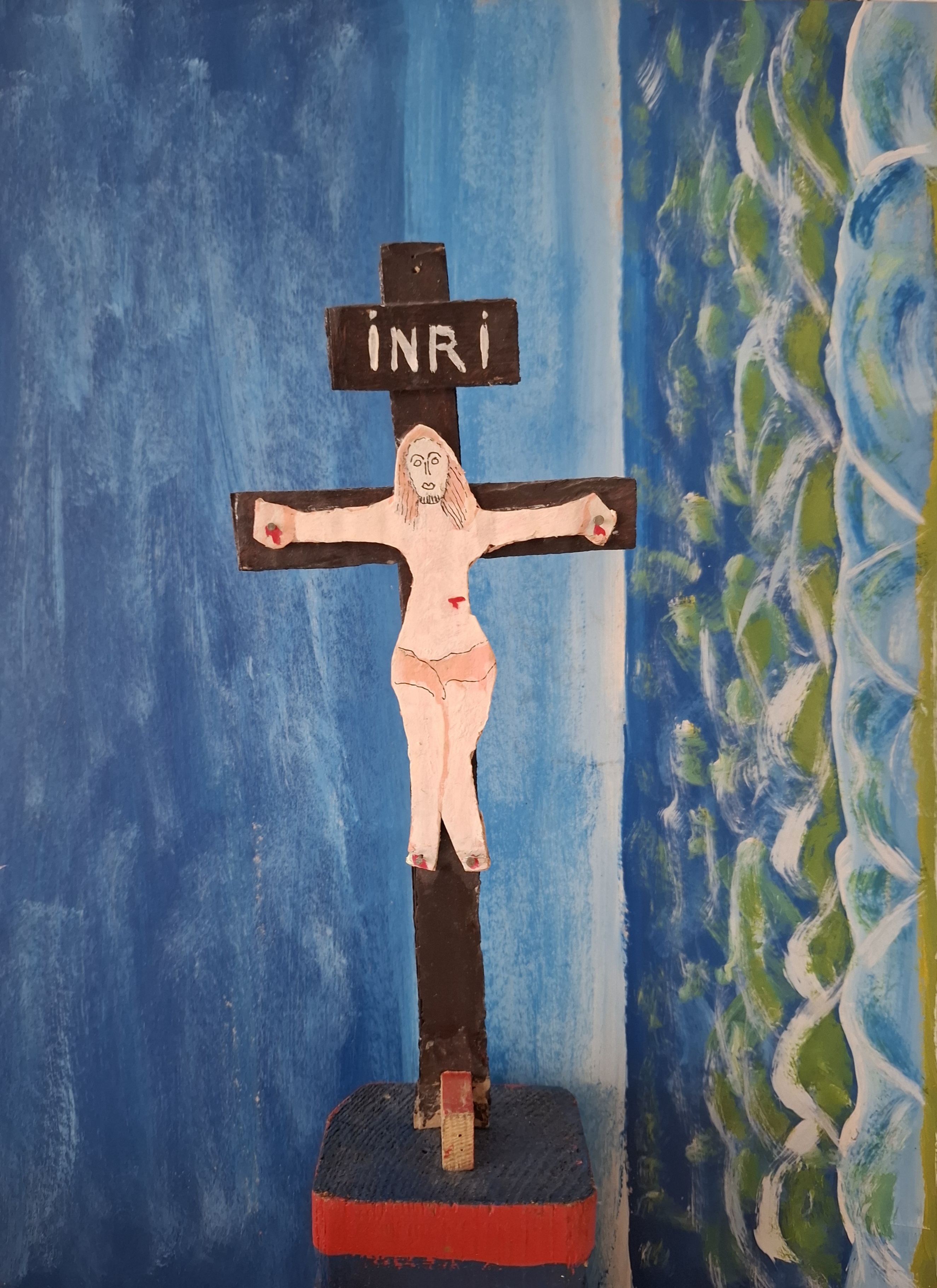 Holz, Pappe, Pappmache, Acryl, 37 x 26 cm
