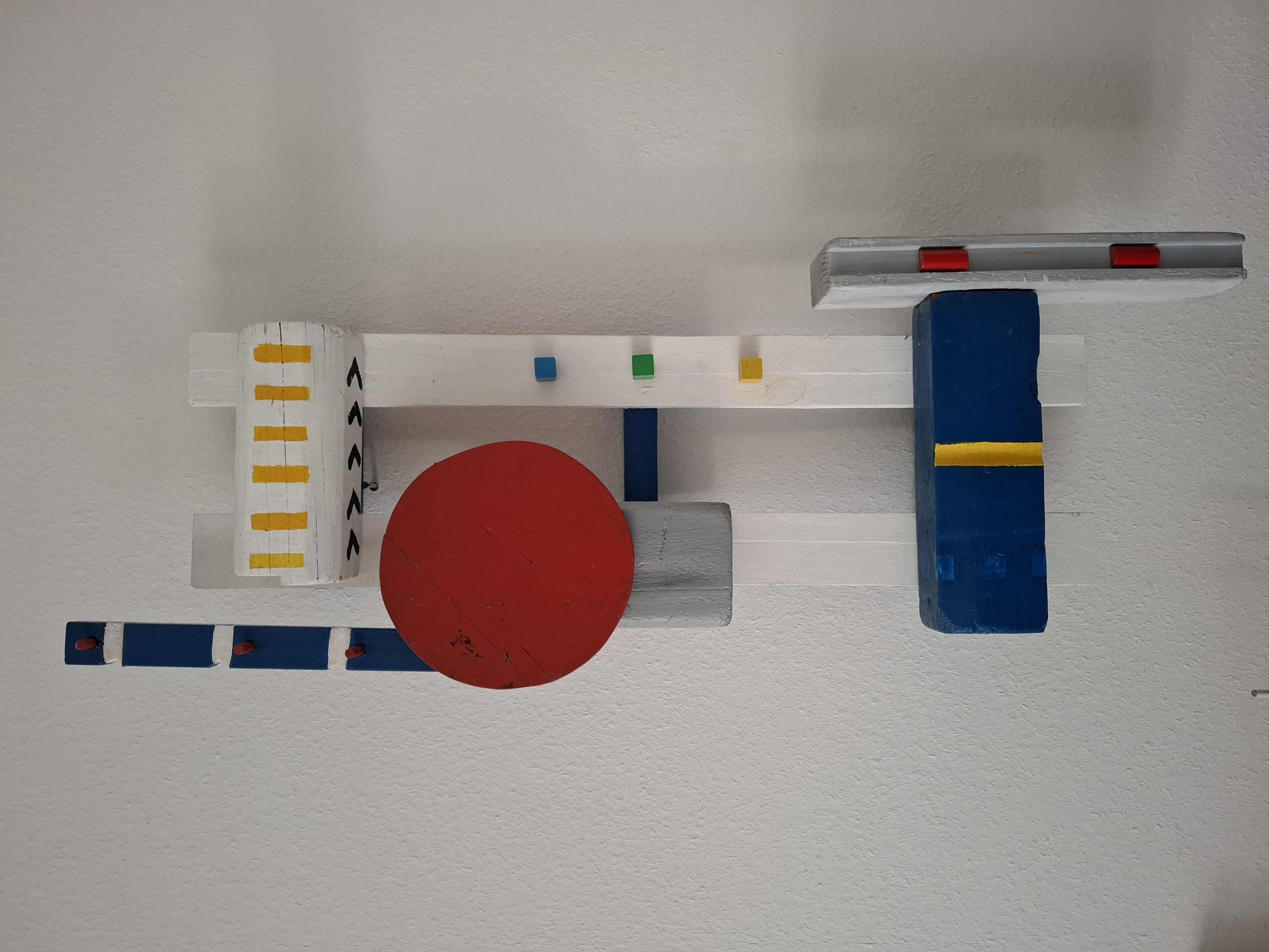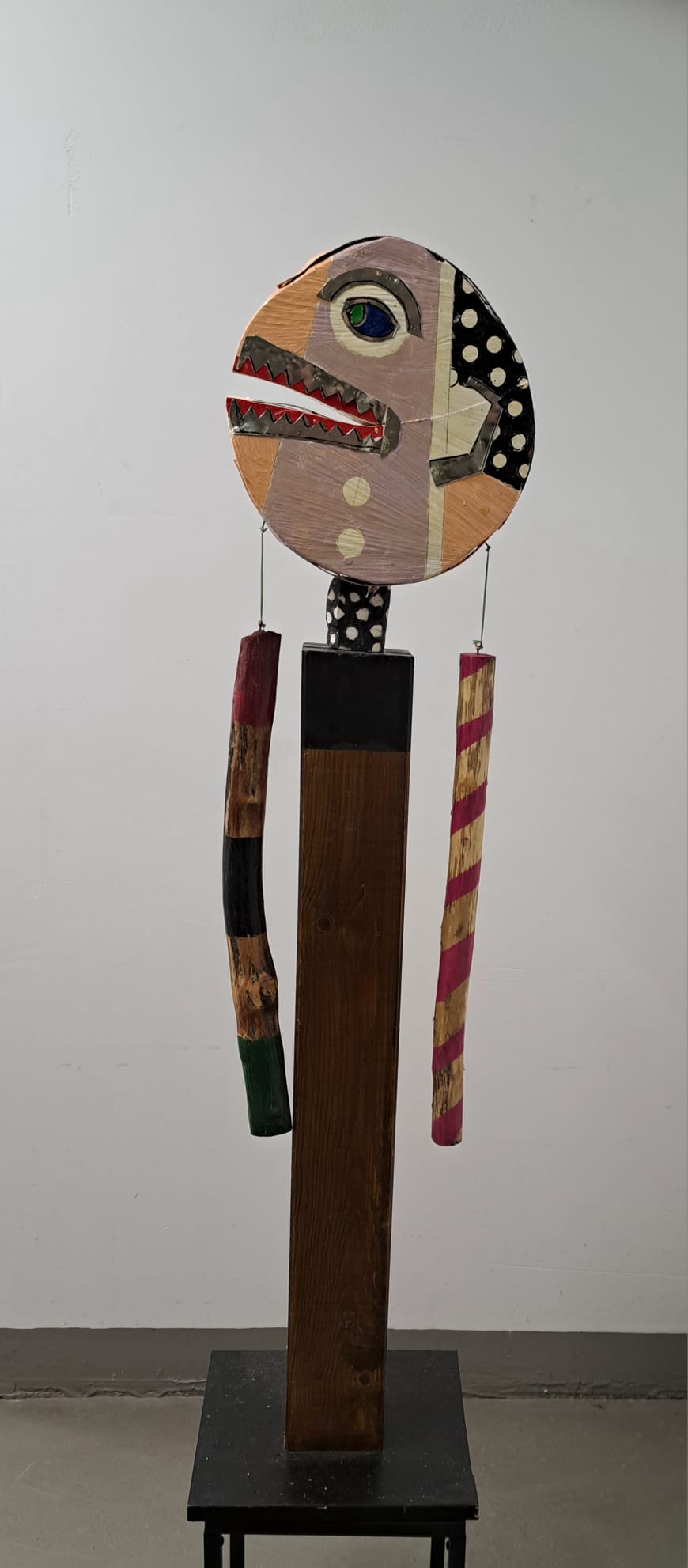 Pappe, Holz und Dosenblech, Keramik, und Acryl, 104 x 17 cm