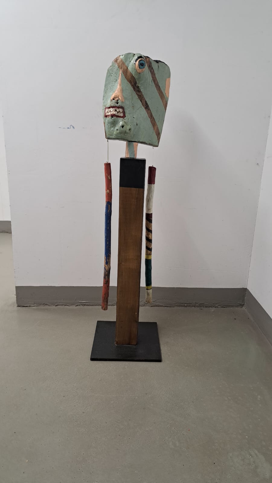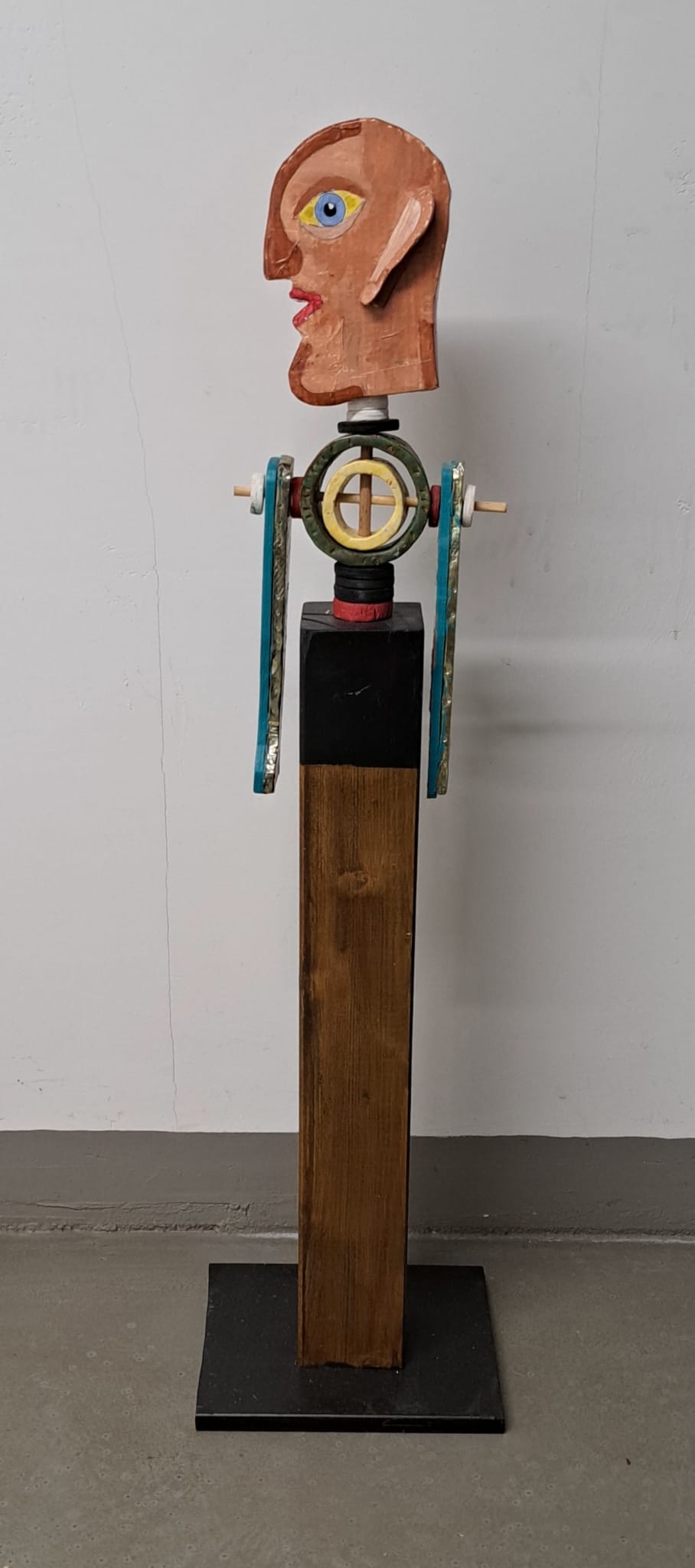 Holz, Pappmache', Acryl, mit Sockel, 65 x 24 cm