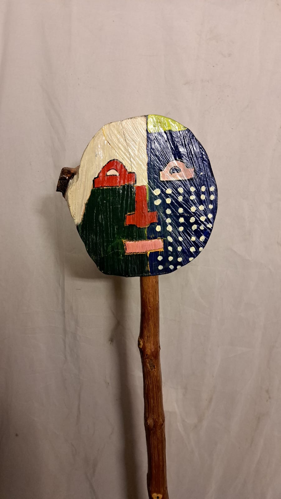 Pappe, Holzstab, Acryl, 60 x 19 cm