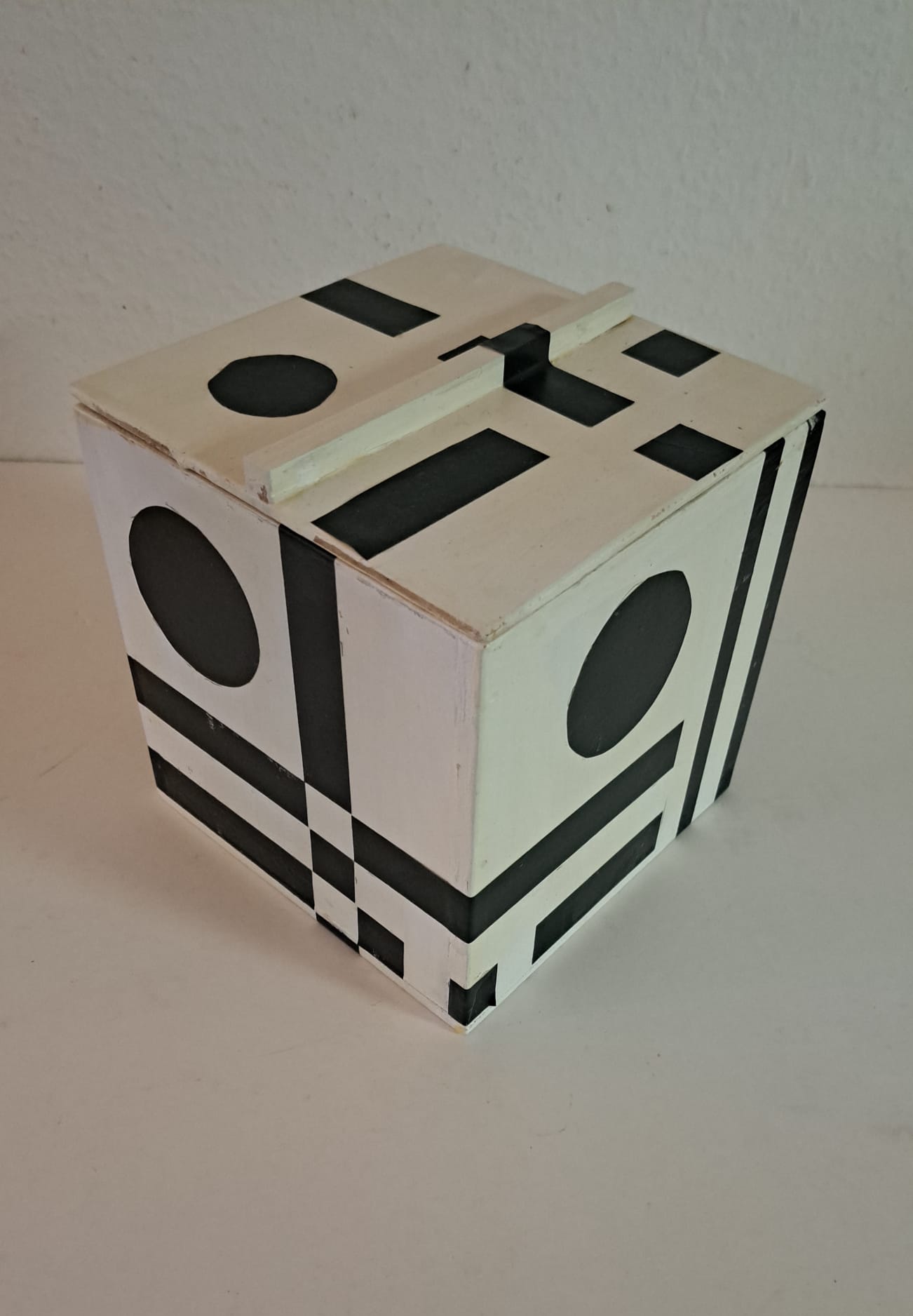 Sperrholz, Acryl, schwarz / weiß, 17 x 16 x 16 cm