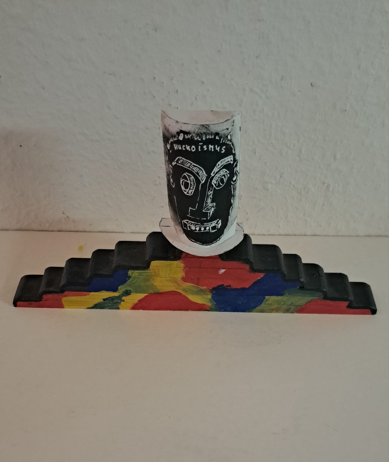 Pappe auf Holzsockel, Acryl, 37 x 12 cm
