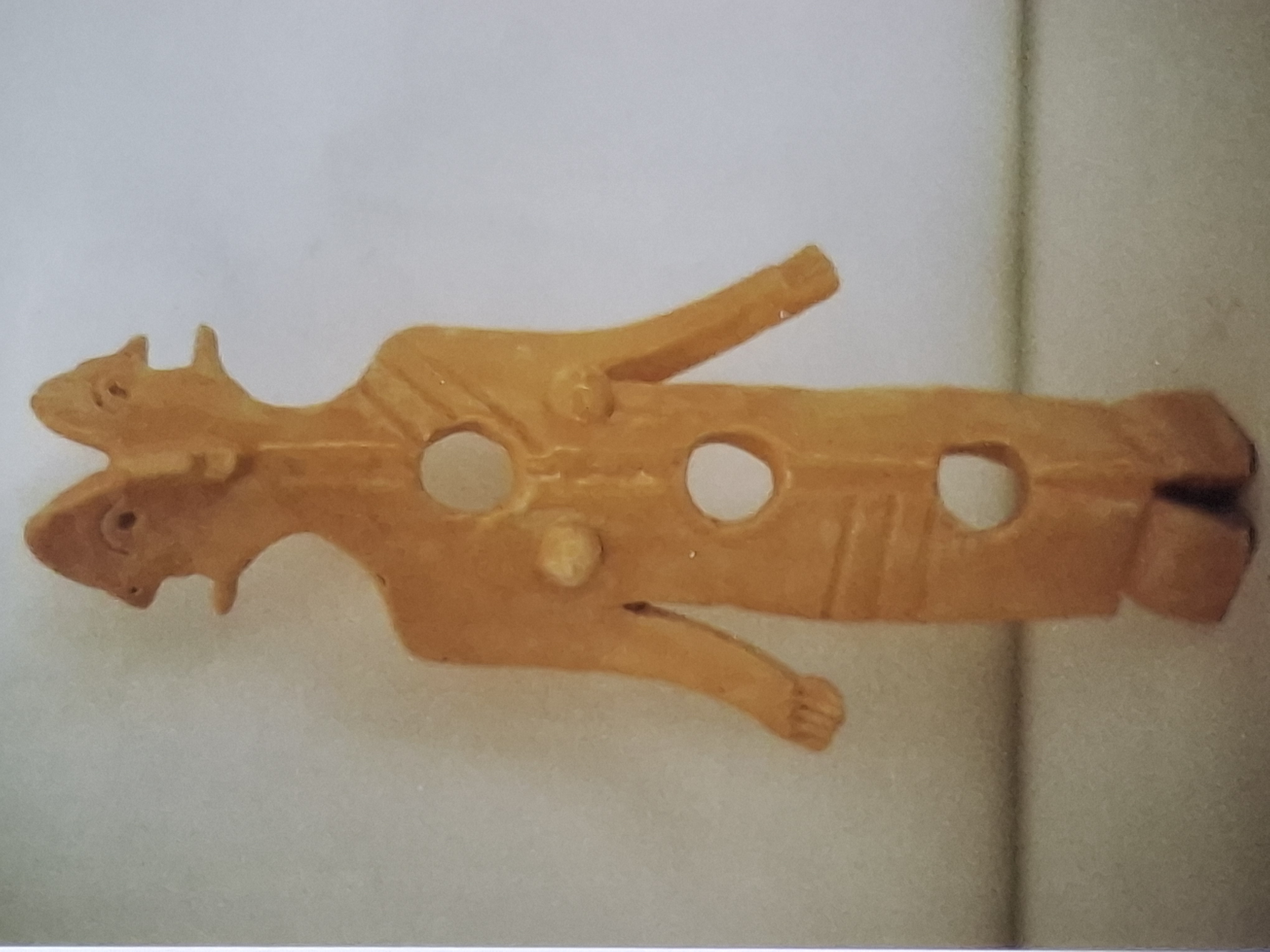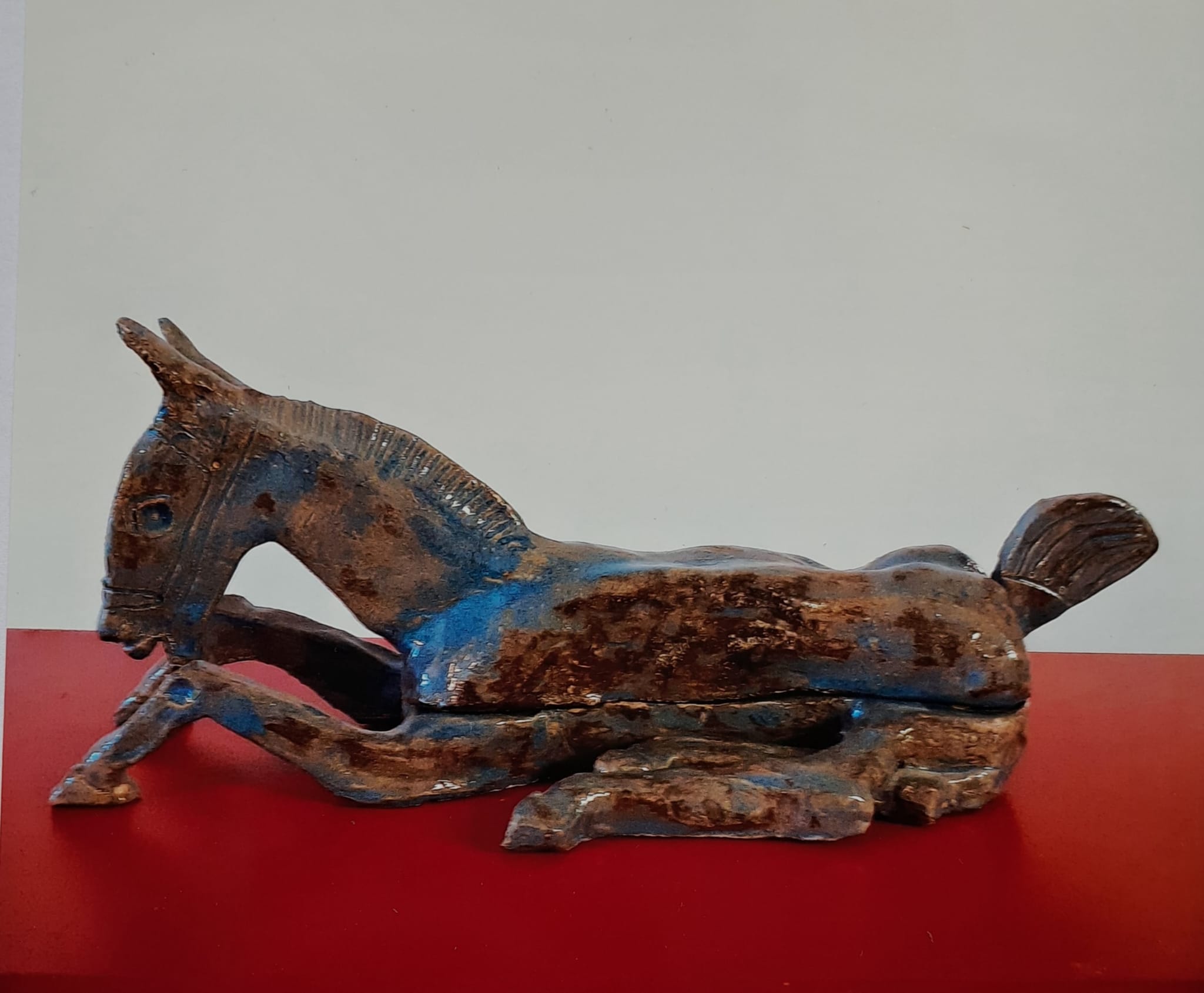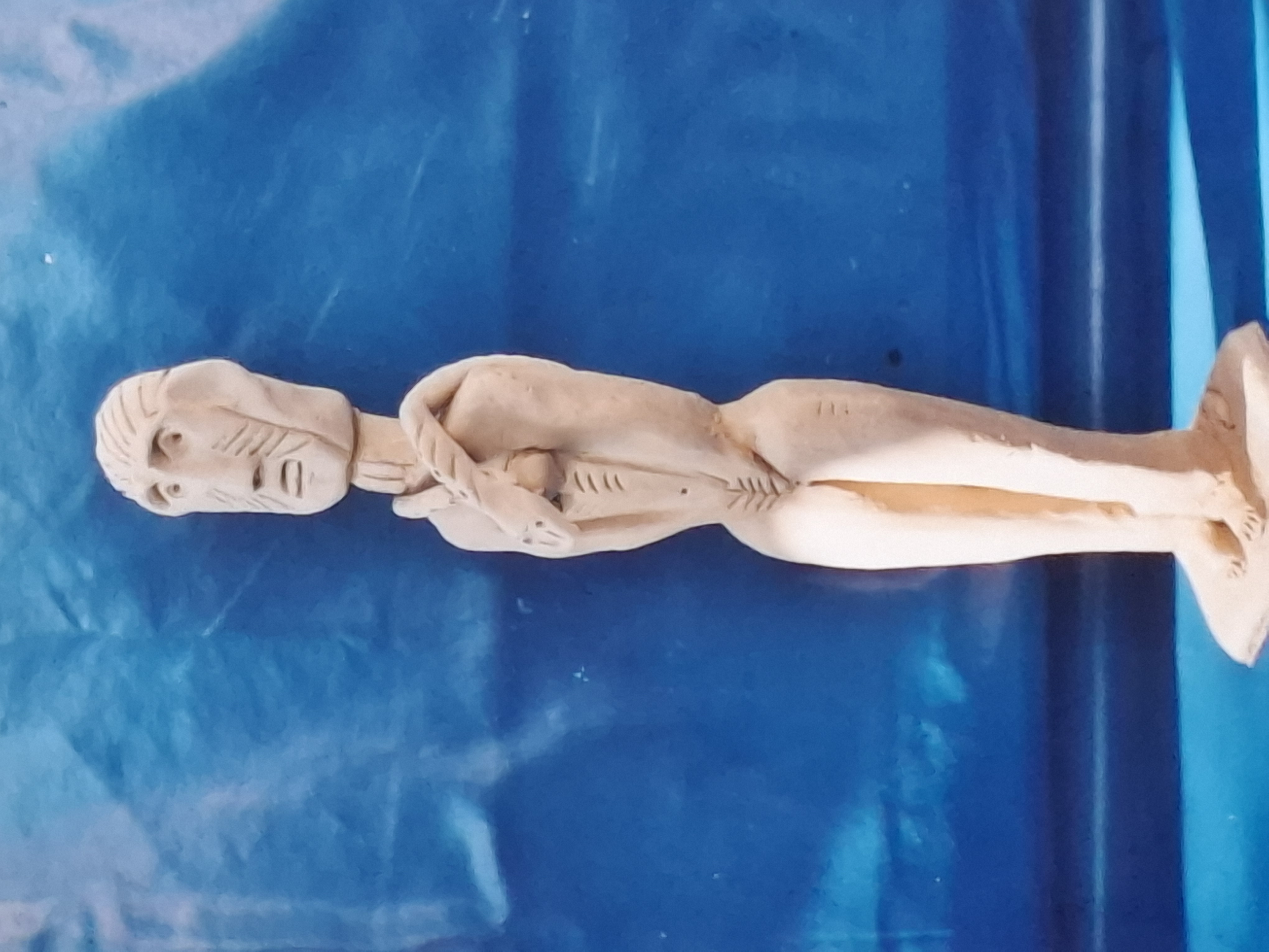 Ton, teilweise rot glasiert, 30 x 9 cm